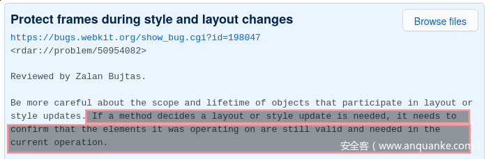 方法buildBubbleTree调用更新布局,在此期间执行所有用户注册的JS处理程序。如果ValidationMessage在一个JS回调中被销毁,当我们返回到buildBubbleTree代码时,这可能会导致后无使用的情况。WebKit开发人员已经发现,在更新样式或布局时可能会出现问题。然而,由于在生成弱指针时产生了额外的解引用,他们未能修复代码。也就是说,我们仍然可以在布局更新期间销毁ValidationMessage实例。