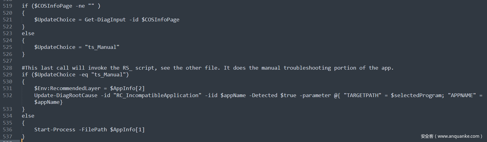 观察TS_ProgramCompatibilityWizard.ps1 脚本的代码:
