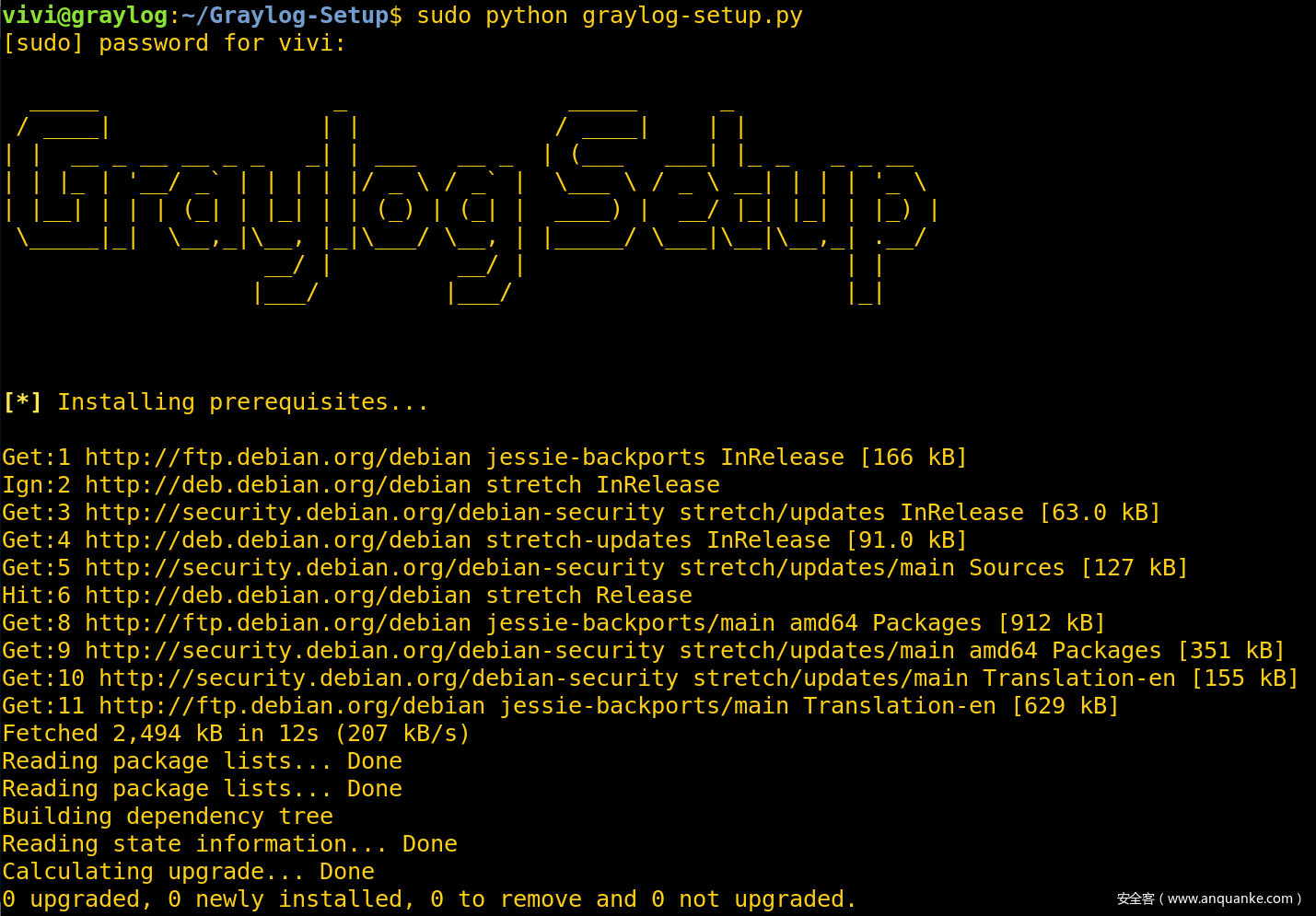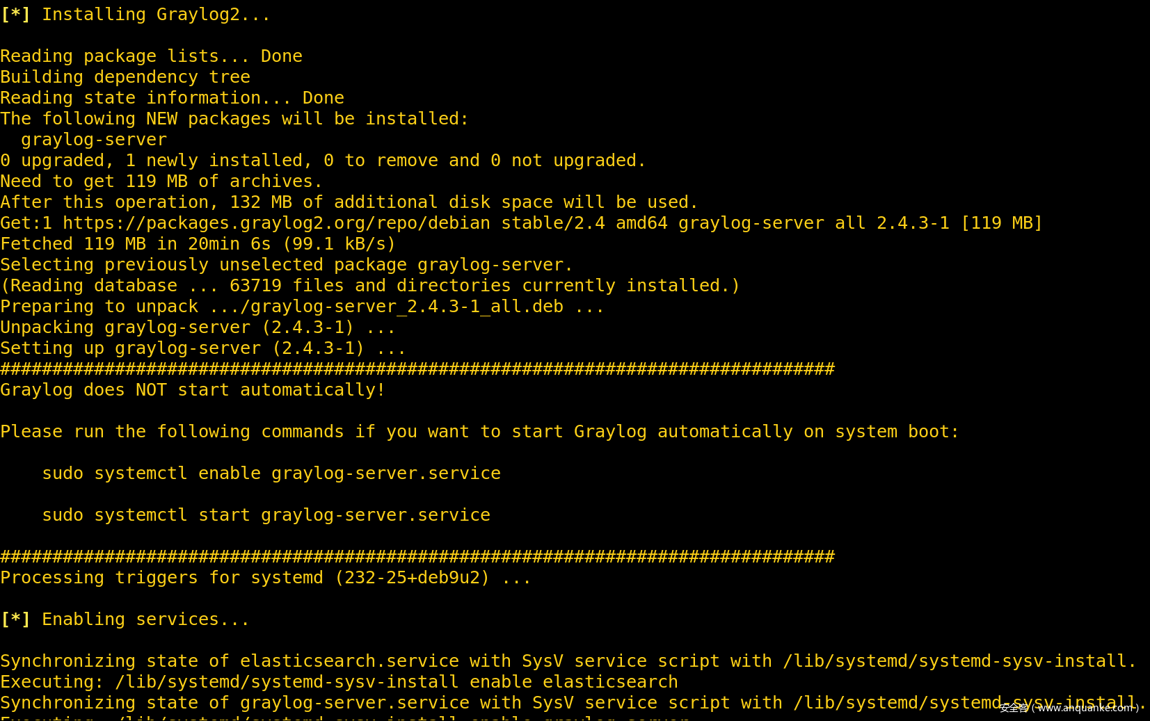 如果您完整安装一遍,会发现安装Graylog可能有点麻烦,所以我编写了一个脚本来自动执行上述所有安装步骤。