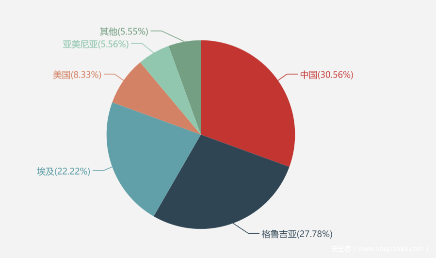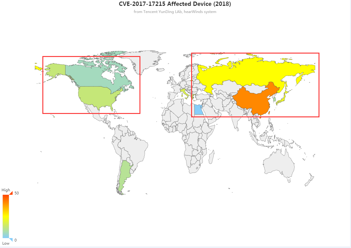 此漏洞的病毒载体感染范围较大,对于中国、格鲁吉亚、埃及的影响最为广泛。中国美国的光纤发展迅速,埃及和格鲁吉亚受到中国影响,光纤发展速度也很快,也是他们受影响设备多的一个原因。
