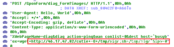 POC 通过GET方法执行setup.cgi,通过todo命令执行syscmd,通过syscmd来执行下载和执行病毒的命令。