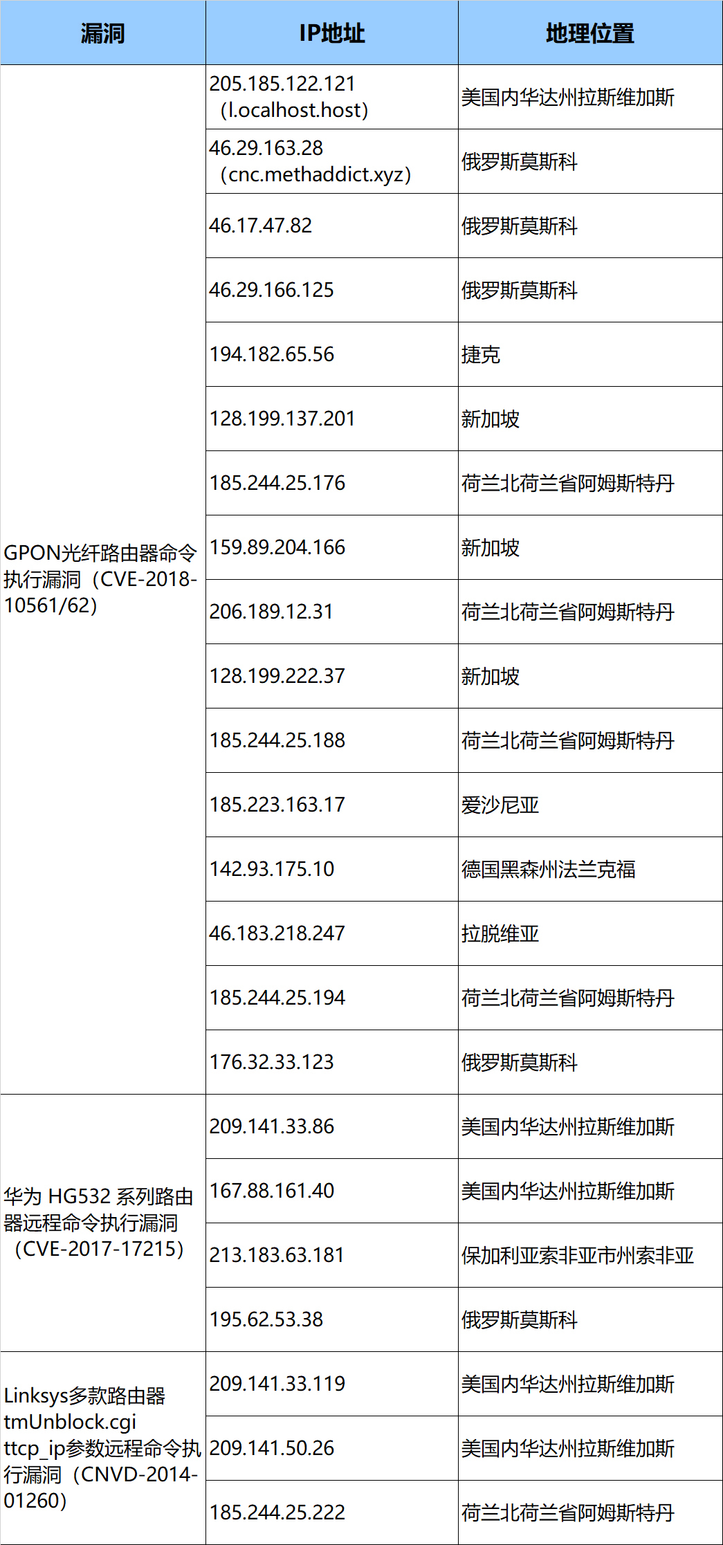 相关漏洞样本的下载地址很固定,基本分布于拉斯维加斯、新加坡、莫斯科和阿姆斯特丹这四个城市。经过黑产链条的团伙比对,针对路由器的黑产团伙服务器的配置位置,在这几个地方部署的量确实较大。