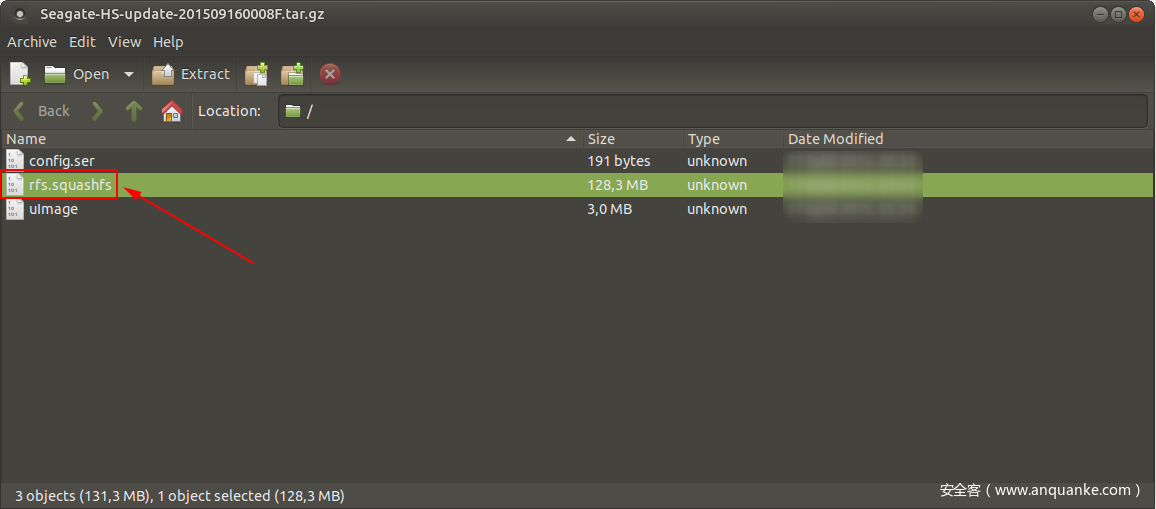 从Seagate官方下载页面下载最新版设备固件后,我开始ZIP固件包。ZIP文件中包含经过压缩的一个二进制文件:Seagate-HS-update-201509160008F.img,简单将该文件扩展名改为tar.gz后,我们可以成功提取出其中的SquashFS文件系统。该文件系统中包含适用于ARM架构NAS设备的管理应用程序的源代码、启动脚本以及busybox文件。