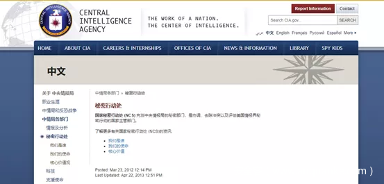 (国家秘密行动处(NCS)充当中央情报局秘密部门,是协调、去除冲突以及评估美国情报界秘密行动的国家主管部门。)