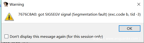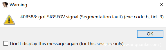 但是继续运行会出现下面的问题,运行到0x40B588处时,lb $v0, 0($a2)报错,此时a2中值为3,无法访问该地址。