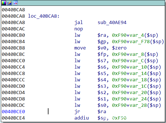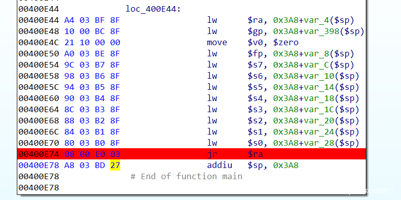 b *0040BCE0 #authenticationcgi_main()函数返回jr ra处