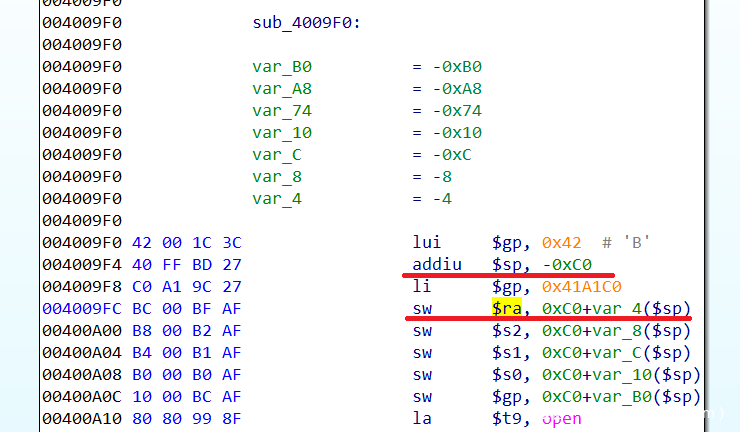 使用IDA或者gdb-multiarch联调运行到authenticationcgi_main()返回时ra寄存器中的值为0x42326A42。