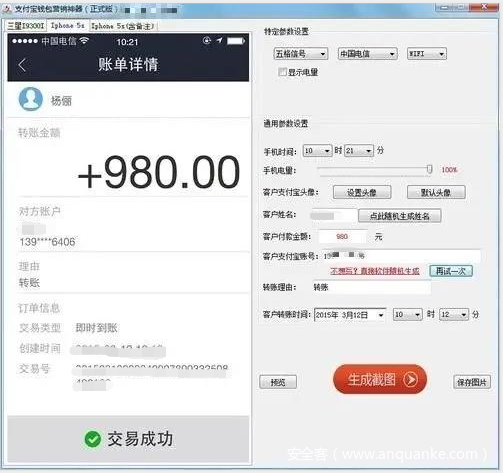 假截图的背后,是各类应用市场存在大量“支付界面生成器”的灰黑软件,利用这些软件,微信对话、微信支付截图、支付宝交易截图、淘宝订单截图等均可造假。一些软件开发者向用户收取“会员费”,可以不限次数地制作假截图。这些会员费少则几十元,多则两三百元。
