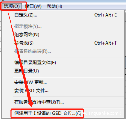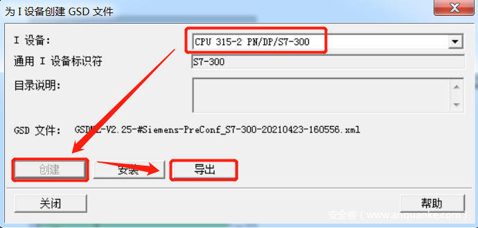 展开菜单栏中的选项,选择“创建用于I设备的GSD文件”,导出GSD文件。