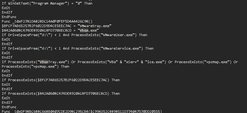 脚本代码也会检查系统进程中是否有avastui.exe,并通过sleep函数躲避杀软的检测。然后会检查当前temp路径下是否存在34772436目录,如果条件不满足,脚本会删除目录下的文件并立即强制重启系统。