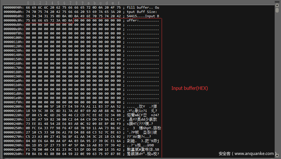 第二步会测试某些溢出,这个实际上在探测阶段也算间接做过了,但是这里我用0x10000大小的buffer做为传入,同样input buff size大小也会很大。