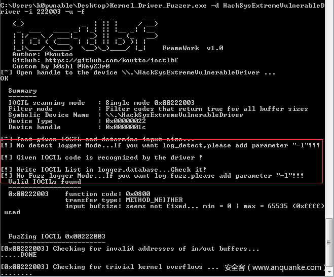 “-i” :待Fuzz的ioctl code,默认从0xnnnn0000-0xnnnnffff