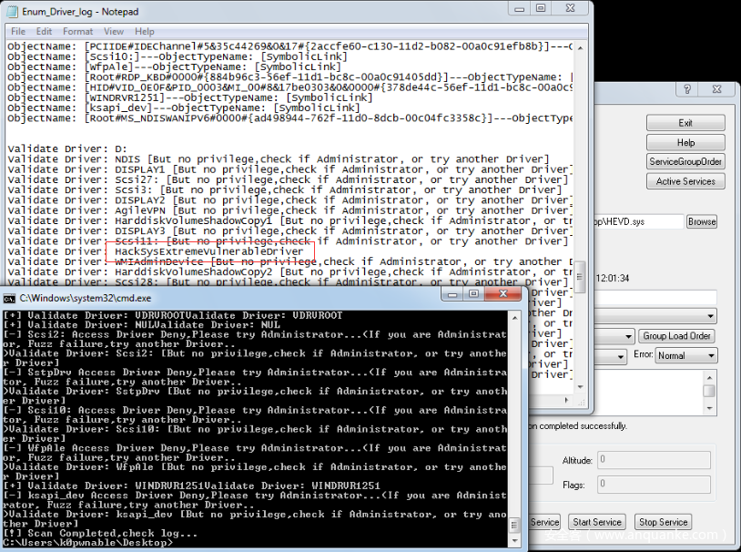 进行驱动枚举,将CreateFile成功的驱动设备名称,以及部分受限的驱动设备名称打印并写入Enum Driver.txt文件中