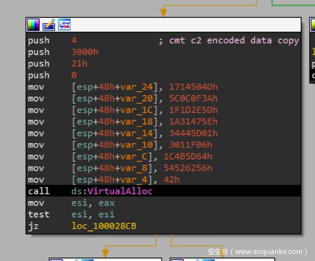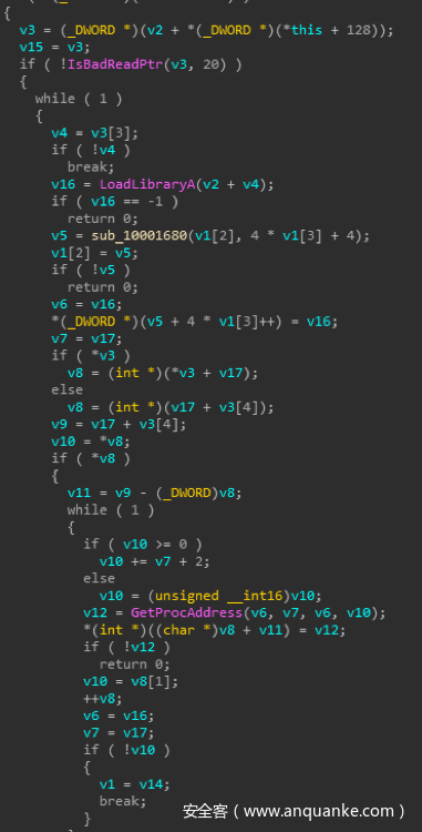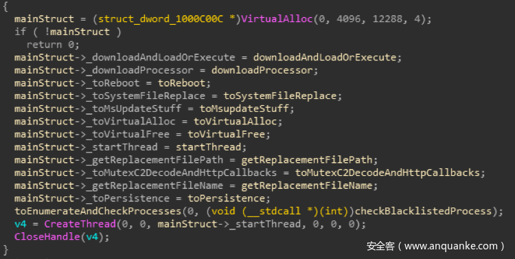 DLL(83439fb10d4f9e18ea7d1ebb4009bdf7)首先初始化一个指向恶意软件核心功能的函数指针。