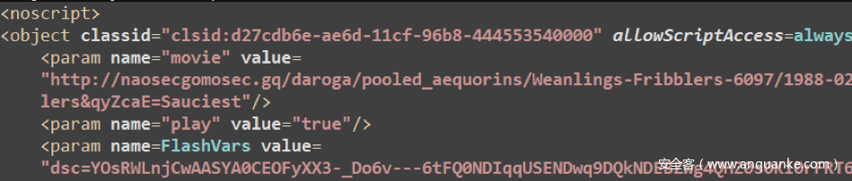 Flash嵌入代码位于‘noscript’标签内,在禁用脚本时加载。