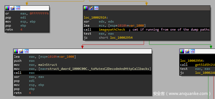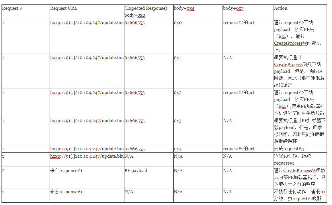 执行时,恶意软件会检查它是作为ctfmon.exe / rundll32运行还是作为表2中的可执行文件运行。如果检查通过,则下载程序开始执行分支。