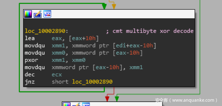 最后,使用具有XMM寄存器的PXOR完成解码。