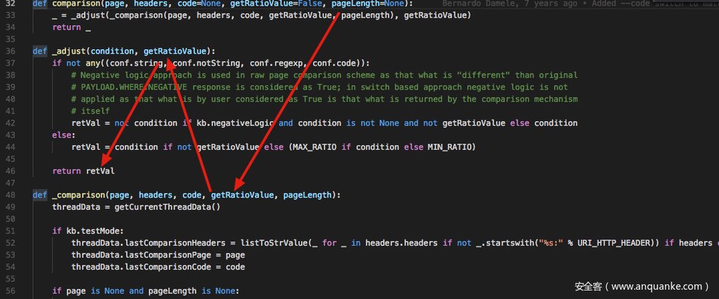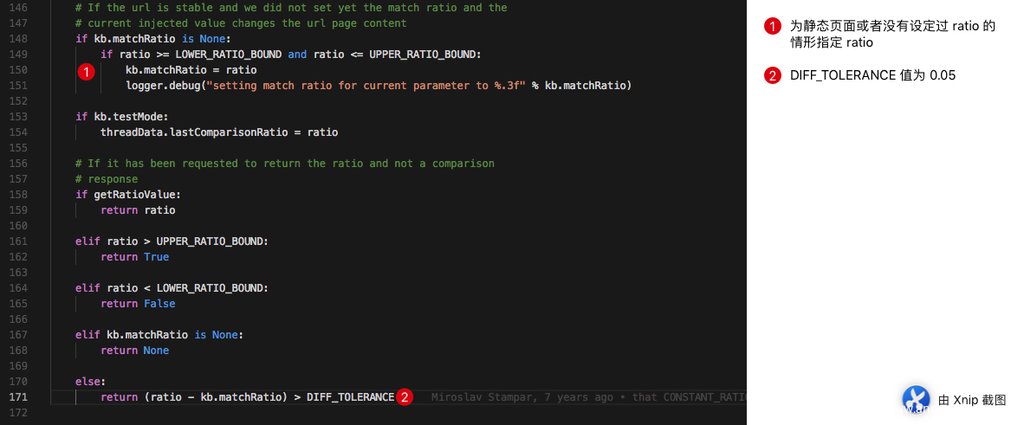 到现在我们理解了 PageRatio 是什么样的一种算法,我们就可以开始观察 sqlmap 是如何使用这一个值的了~