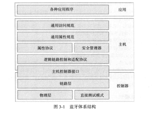 上文搭建的虚拟环境中APP点击相关功能,服务端响应后在控制台也可以看到一定的log输出,方便我们理解协议的交互,接下来我会配合捕获的流量进行解释,数据包流量也已备份至Github。低功耗蓝牙的体系结构如下: