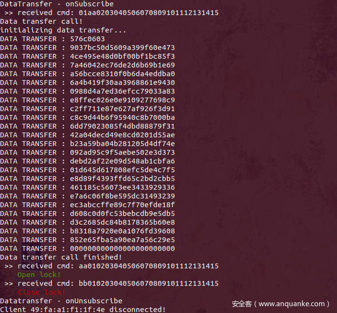 开关锁的操作在服务端控制台的输出上看,貌似是有一个内部的认证过程: