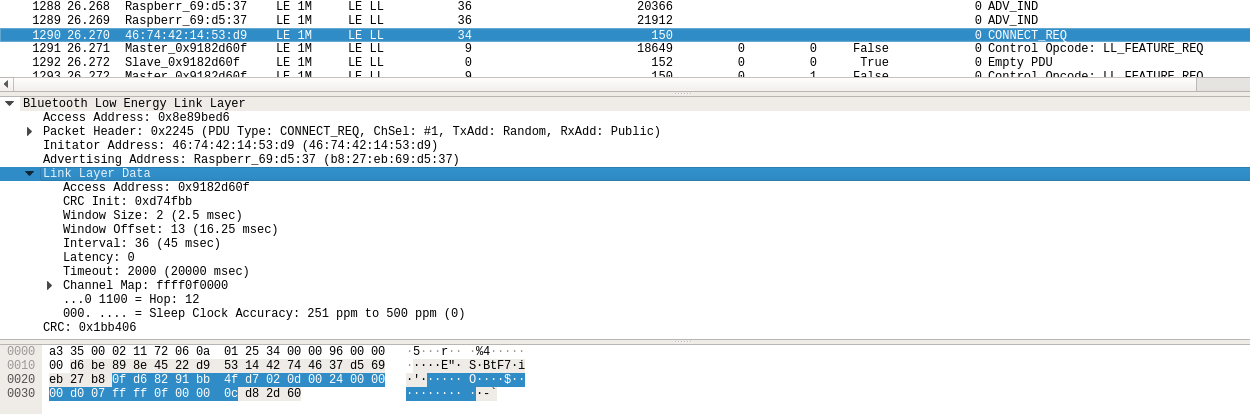 打开手机App在被动扫描接收到所需的广播报文后,便会发起连接请求: