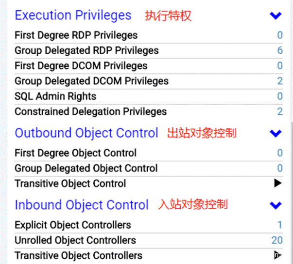 用户可到达高价值目标数量,默认的高价值目标是域管理员,域控制器和其他几个高特权Active Directory组的任何计算机或用户