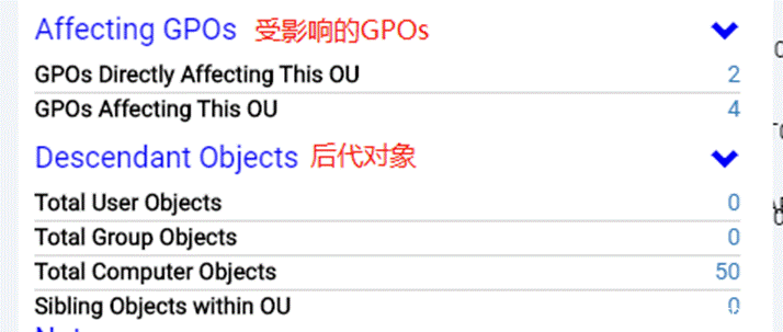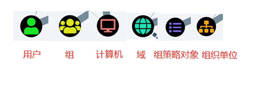 节点又细分为6种,分别是Users用户、Groups组、Computers计算机、Domain域、GPOs组策略对象、OUs组织单位;