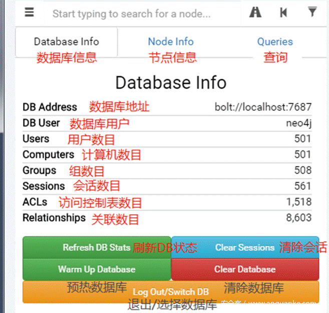 其中 更多信息 页面,包含了数据库信息,节点信息以及查询这几大块。