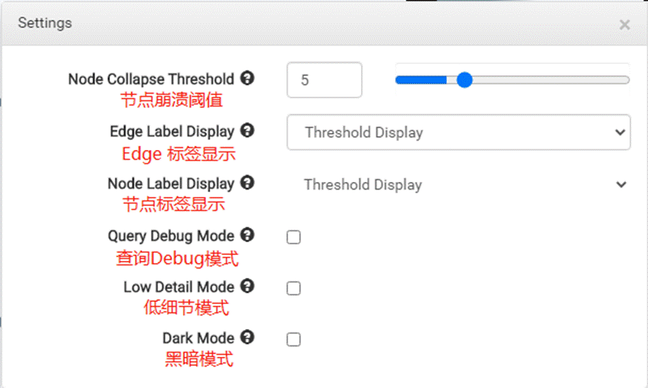 Edge 类型过滤 选择是否显示该 Edge ,默认全部显示,如果你取消了某种Edge,那么在进行新的查询之后将不会显示与该Edge有关的结果
