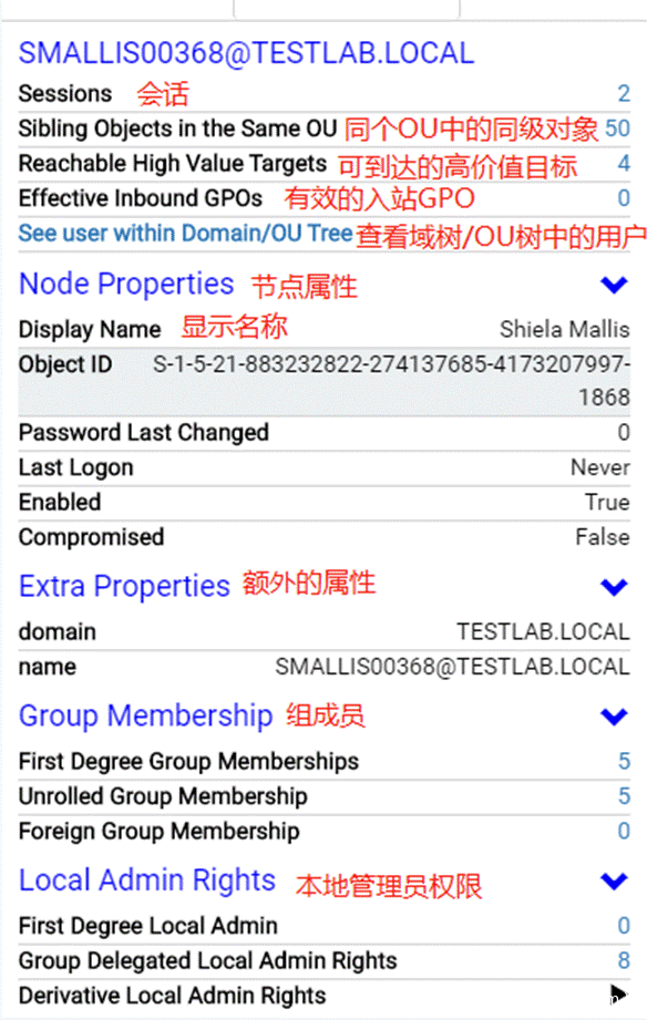 第一行的SMALLIS00368@TESTLAB.LOCAL中的SMALLIS00368是SAM账户名,TESTLAB.LOCAL是该用户所在域的域名。