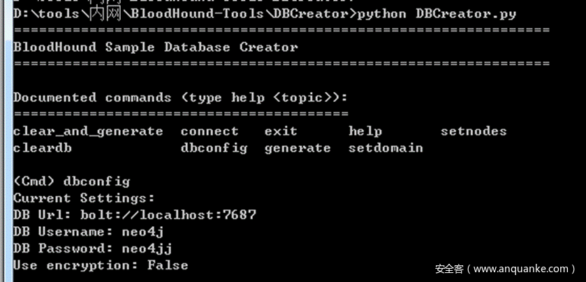 dbconfig命令默认的账户密码为neo4j/neo4jj ,如果你的数据库密码不是这个,建议在 DBCreator.py 的第48行将默认密码改为你现在的数据库密码,然后使用 clear_and_generate 一键生成随机数据