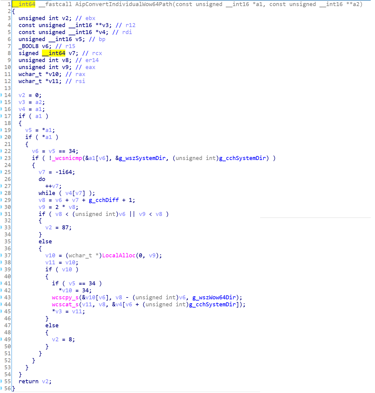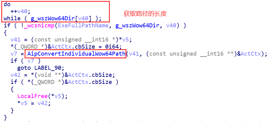 AipConvertIndividualWow64Path函数的实现很简单,伪代码如下: