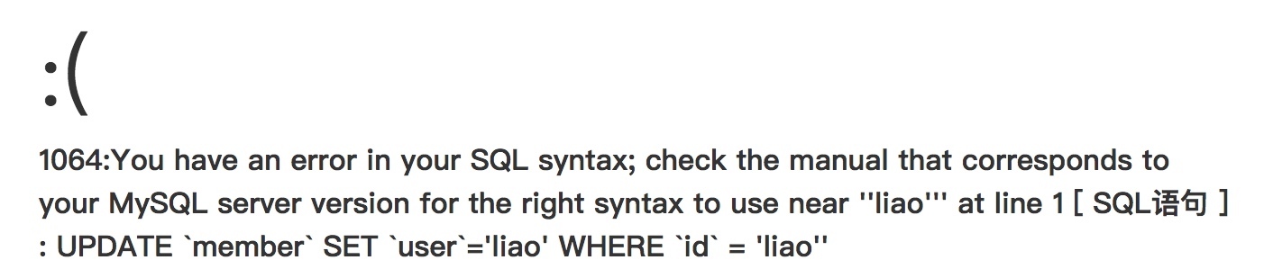 UPDATE `member` SET `user`=:0 WHERE `id` = :1'