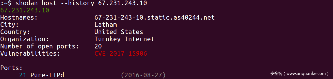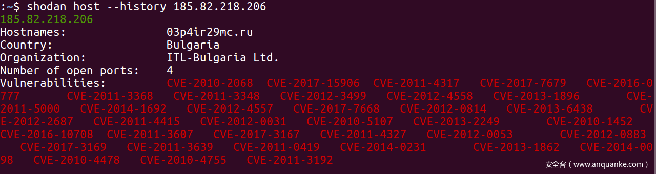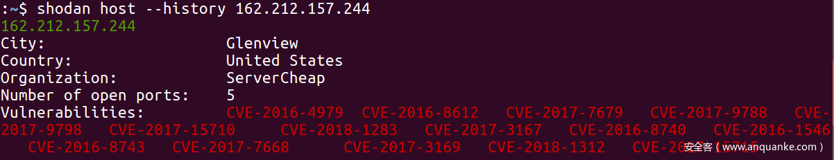 当我们使用Shodan CLI获得最常用IP的历史视图时,我们看到以下内容: