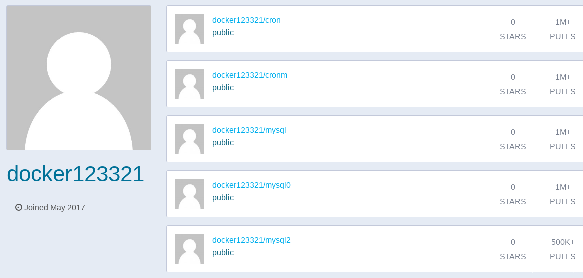 图5. Docker Hub docker123321镜像库被指控存储恶意镜像