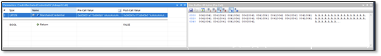 检查内存数据,我们可以猜测传入的参数为指向某个结构的指针。由于我们寻找的信息位于该结构起始位置,因此我们无需完整解析这个结构。与前面的分析过程相反,这里能找到对该函数的多处调用,但很多都没有包含我们寻找的信息。根据观察,我们可知前4个字节包含密码字符串的大小。因此为了解决该问题,我们可以从内存中读取大小值,判断该值是否大于0x2,如果满足条件,则意味着该结构中包含密码信息。