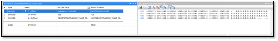 根据API Monitor分析结果,CryptProtectMemory位于Crypt32.dll中,但这个结论并不准确。在最新版的Windows 10中,该函数是dpapi.dll的一个导出函数。为了确保该API上包含我们所需的数据,我们使用Windbg attach到目标进程,在CryptProtectMemory函数上设置断点。