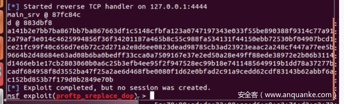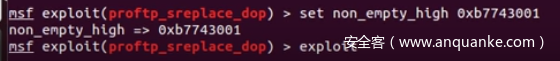 为了直观的感受DOP攻击能够实现的目标,接下来将会对ProFTPD进行两种不同的攻击。该程序存在栈溢出漏洞(cve 2006-5815)。攻击时使用metasploit来进行,脚本可以在作者提供的虚拟机中查看(https://drive.google.com/file/d/0B_6p5h2gdgmoTV9ON0xYZWpMRTg/view)。要自己解决的问题只有一个:选择一个当前进程空间中的以0xb开头的可写地址,且内容不能为\0。所有攻击均在ASLR和DEP开启的情况下进行。
