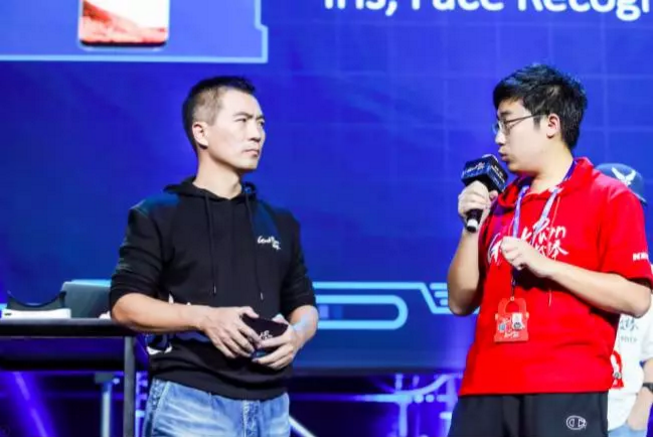 图为 Xpwn破解大赛现场,小灰灰和百度安全实验室的黄正展示共享单车的破解。