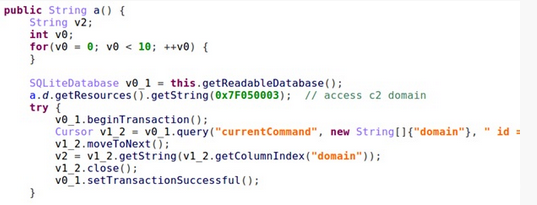 恶意软件使用SQLite数据库命令来存储和调用远程控制的地址: