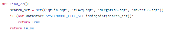 2017年4月,“影子经纪人”发布了著名的“Lostin Translation”泄密事件,其中包含一个用于查看受攻陷系统中其它 APT 组织痕迹的 python脚本 sigs.py。每次查看都以函数执行,查看系统中的唯一签名,例如具有唯一名称或注册表路径的文件。尽管某些检查是空的,但 sigs.py 中列出了44个条目,其中很多都和这个神秘的 APT 组织有关。