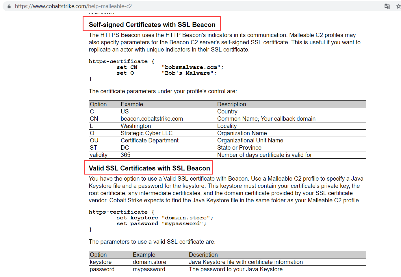 如果想要修改这个证书,需要修改Malleable C2 profile。详情看官方文档:https://www.cobaltstrike.com/help-malleable-c2