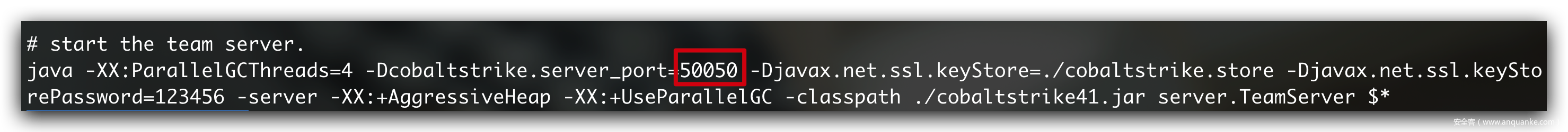 CobaltStrike的连接端口默认为50050,这是个很明显的特征。要想修改这个默认端口,我们可以修改teamserver文件,将50050端口改成任意其他端口均可。
