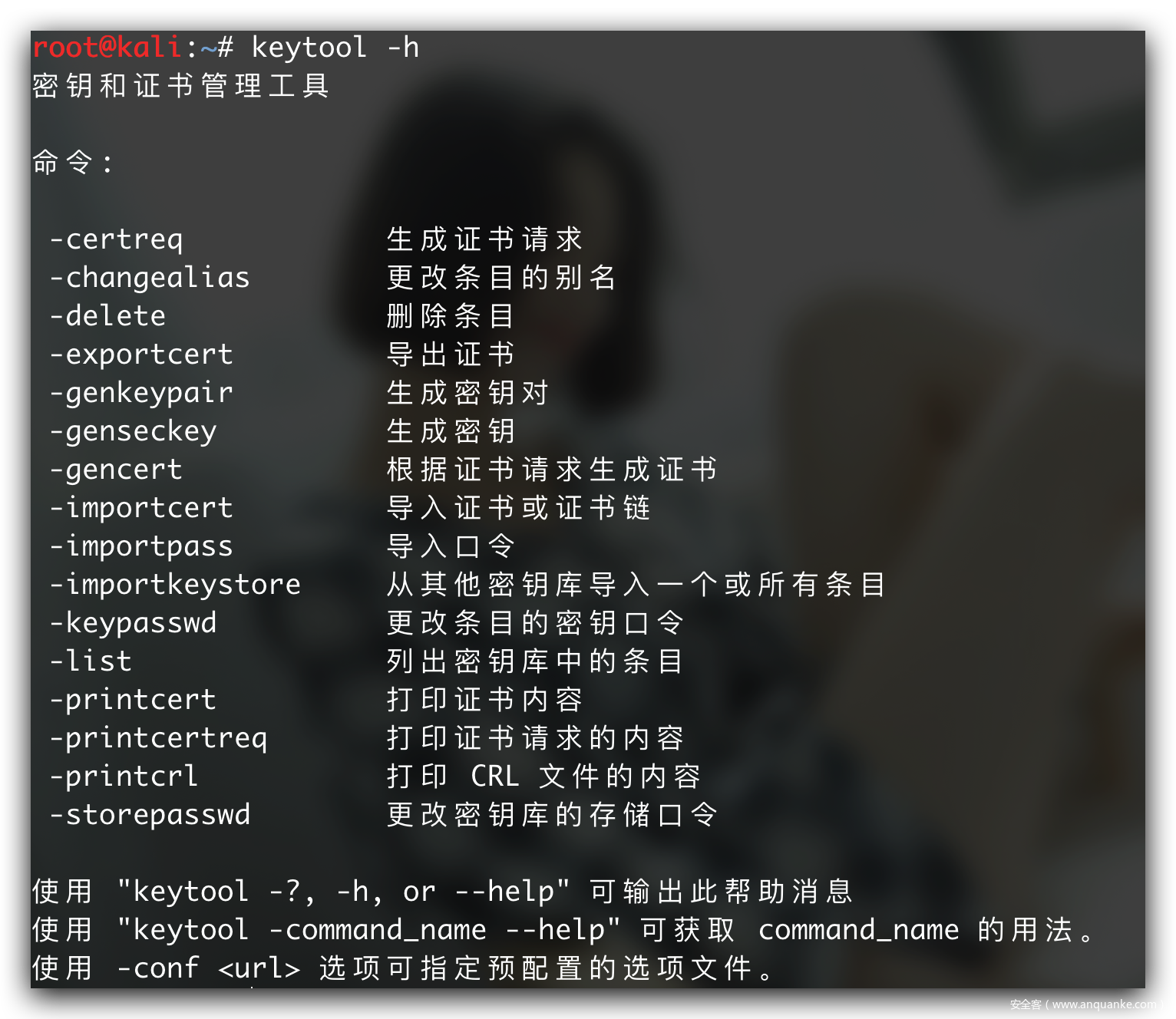 Keytool是一个java数据证书的管理工具,Keytool将密钥 和 证书 存放在一个称为 keystore 的文件中,即.store后缀的文件中。