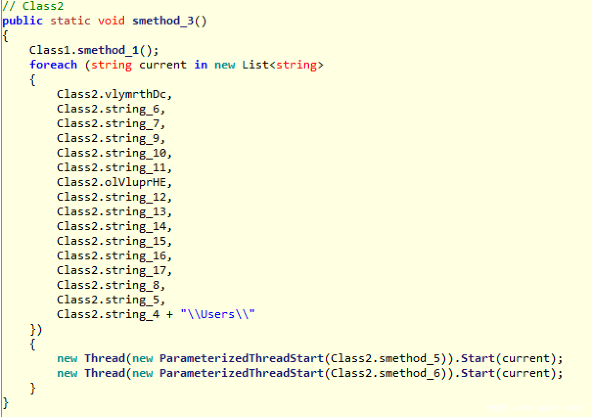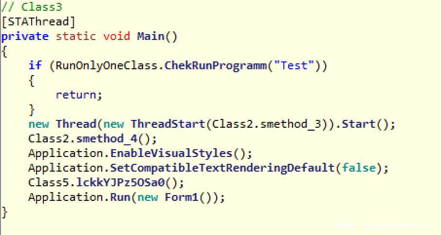 现在该类的构造函数已经启动了,让我们来看看被调用的smethod_3 函数。