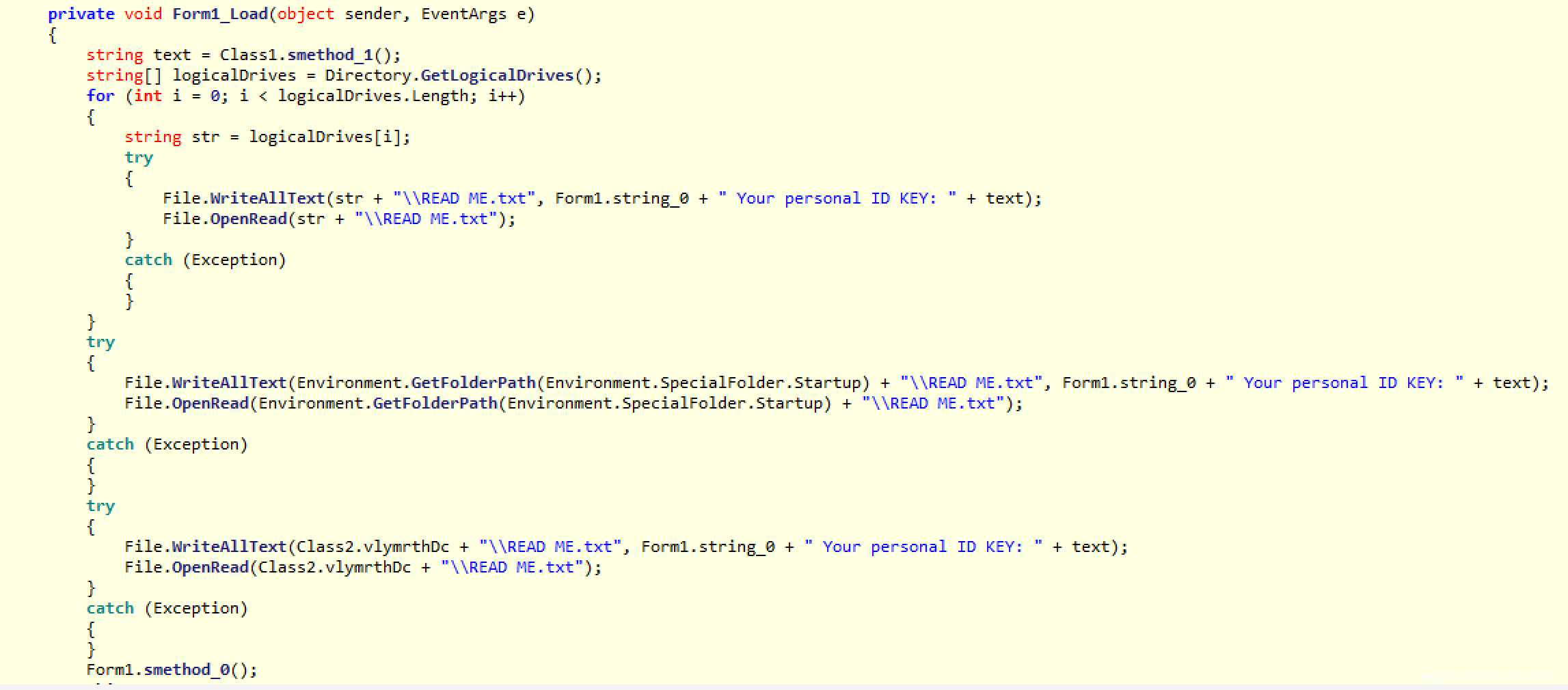 一般来说,我们注意到一有NET勒索软件出现了,它们都差不多是一样的或者相似的。这仅仅是罪犯创造的一种简单的赎金形式,因为它不需要花费太多的时间或脑力。