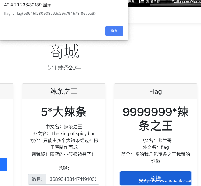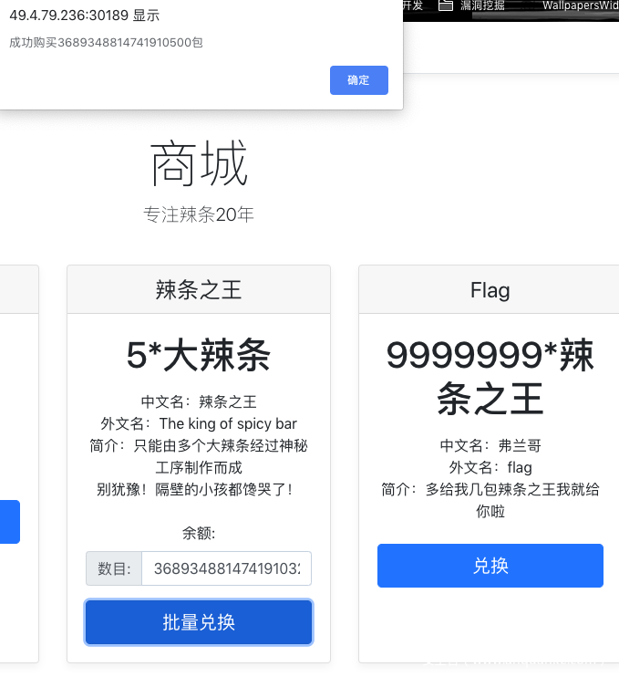 然后我们这里兑换3689348814741910324即可溢出