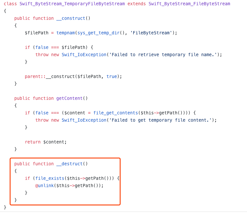 $a = serialize(new Swift_ByteStream_TemporaryFileByteStream());