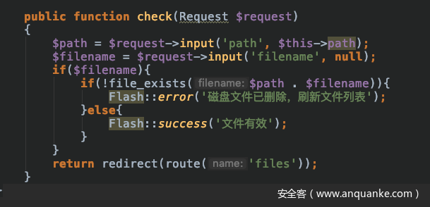 是会使用file_exists的,并且path和filename可控!